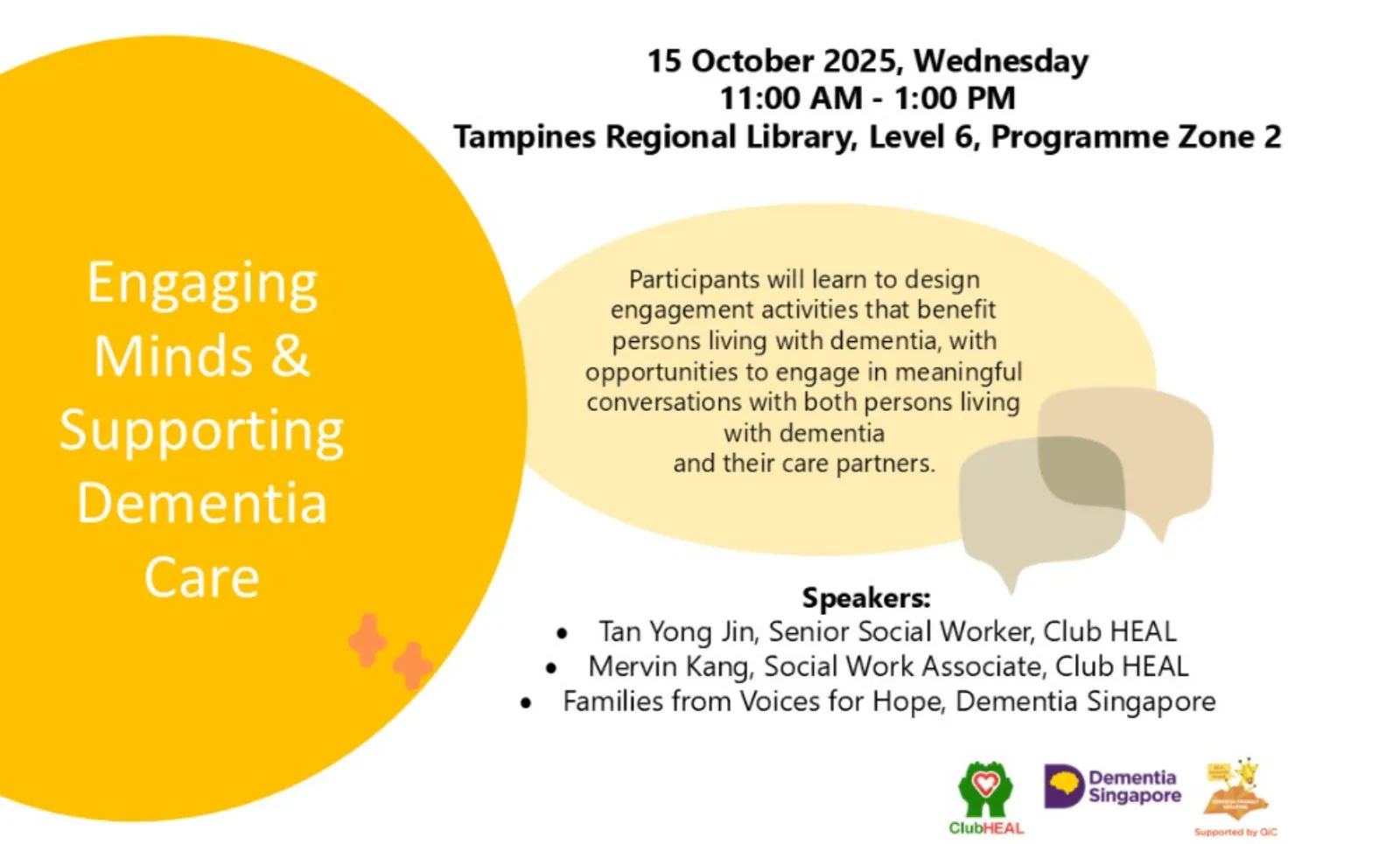 This talk is organised by Club HEAL and Dementia Singapore (Voices For Hope)