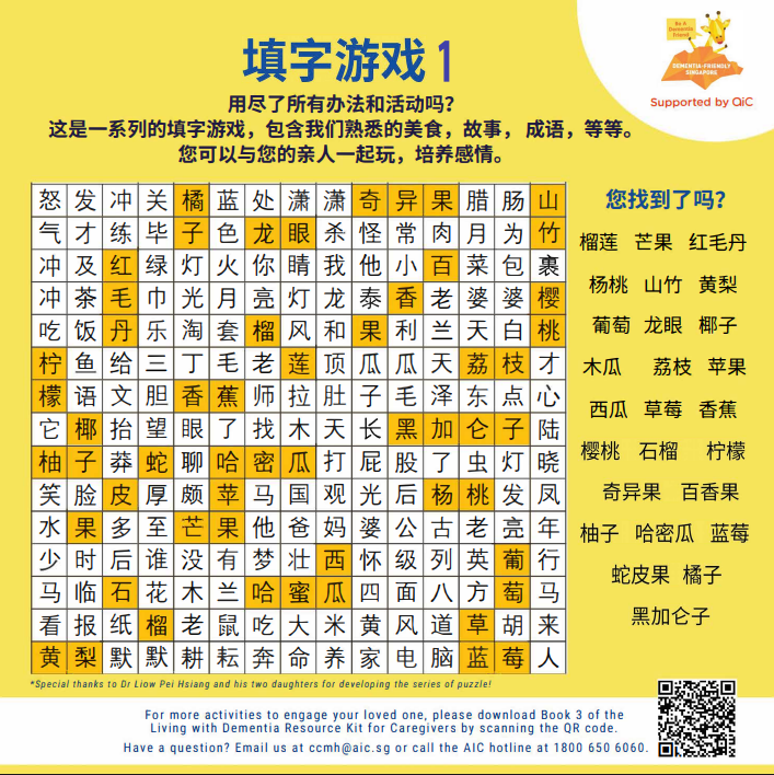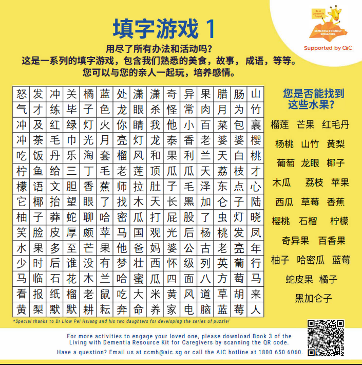 Compiled by the Ang Mo Kio Partners Network, this is a dementia resource of local amenities and services for residents to live well in the community.
