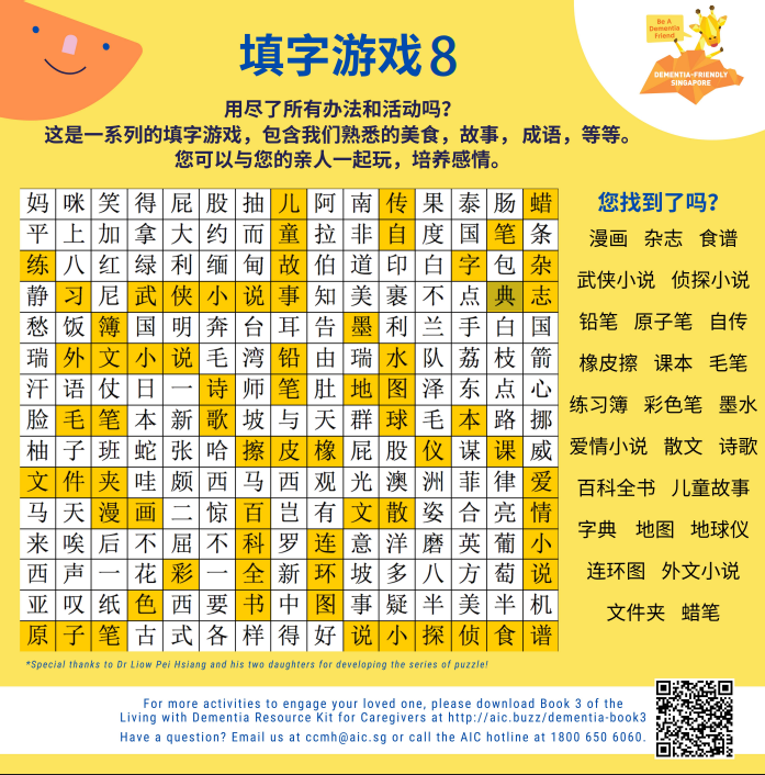 Puzzles 1-8 from 15 Singapore-themed puzzles and answers by Dr. Liow Pei Hsiang, designed by the Agency for Integrated Care.